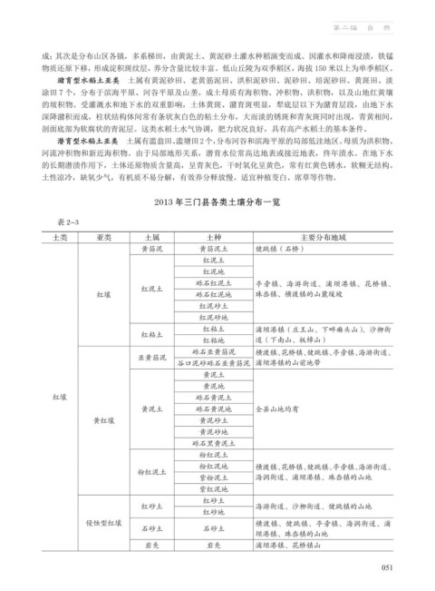 涂田 7 个,分布于滨海平原、河谷平原及山垄。成土母质有海积物、冲积物、洪积物,以及山地红黄壤