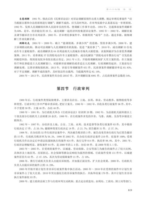 2004 年~ 2013 年,民商事案件共办结 20547 件,其中调解结案 6981 件,占民商事案件总数的 34%。