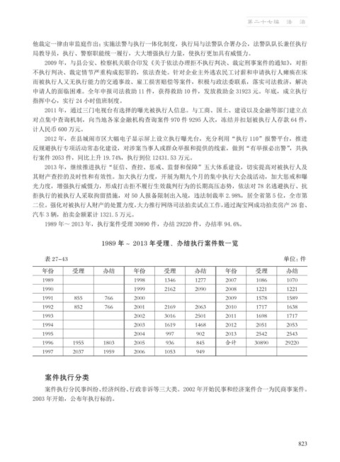 1989 年~ 2013 年,执行案件受理 30890 件,办结 29220 件,办结率 94.6%。