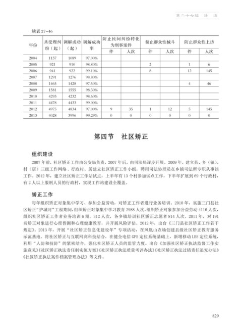 2007 年前,社区矫正工作由公安局负责,2007 年后,由司法局逐步开展。2009 年,建立县、乡(镇)、