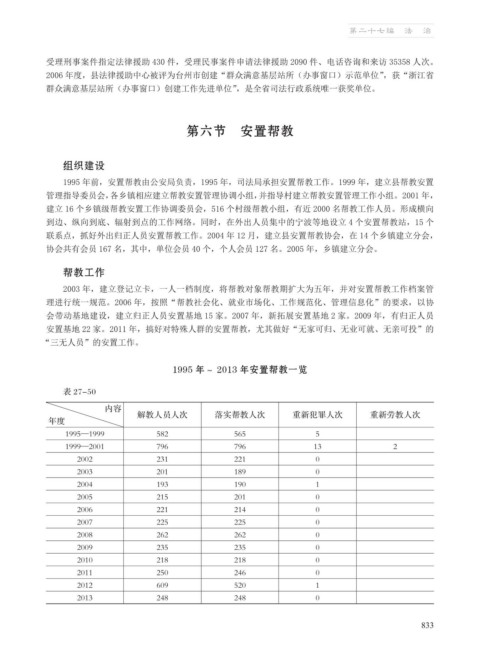 1995 年前,安置帮教由公安局负责,1995 年,司法局承担安置帮教工作。1999 年,建立县帮教安置