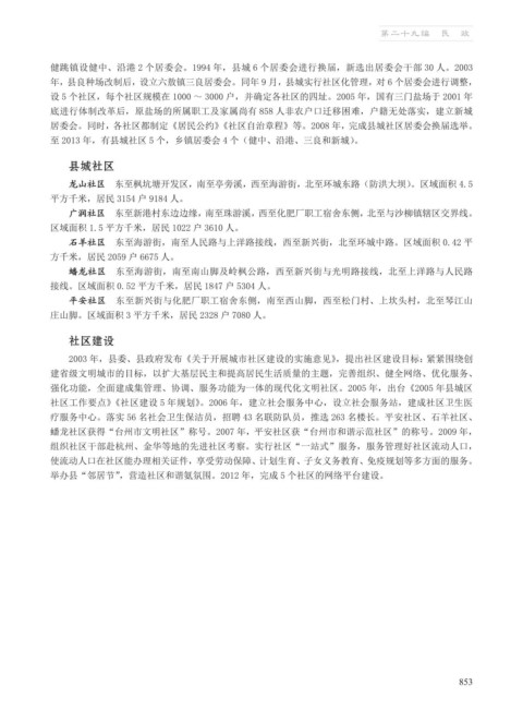 居委会。同时,各社区都制定《居民公约》《社区自治章程》等。2008 年,完成县城社区居委会换届选举。
