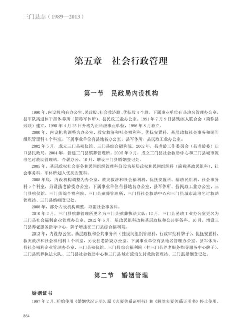 浪乞讨救助管理站,合署办公。10 月,增设三门县婚姻登记处。