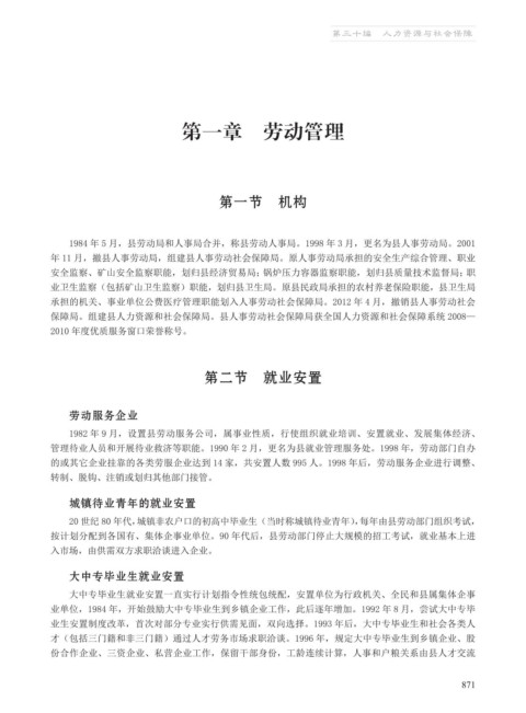 1984 年 5 月,县劳动局和人事局合并,称县劳动人事局。1998 年 3 月,更名为县人事劳动局。2001