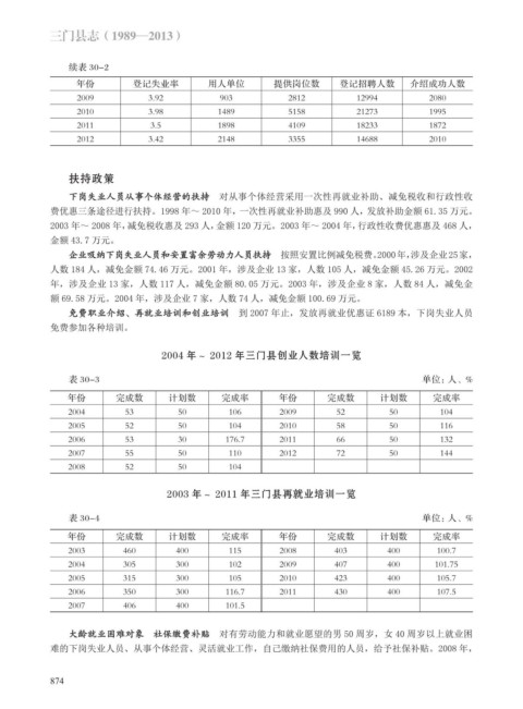 2003 年~ 2008 年,减免税收惠及 293 人,金额 120 万元。2003 年~ 2004 年,行政性收费优惠惠及 468 人,