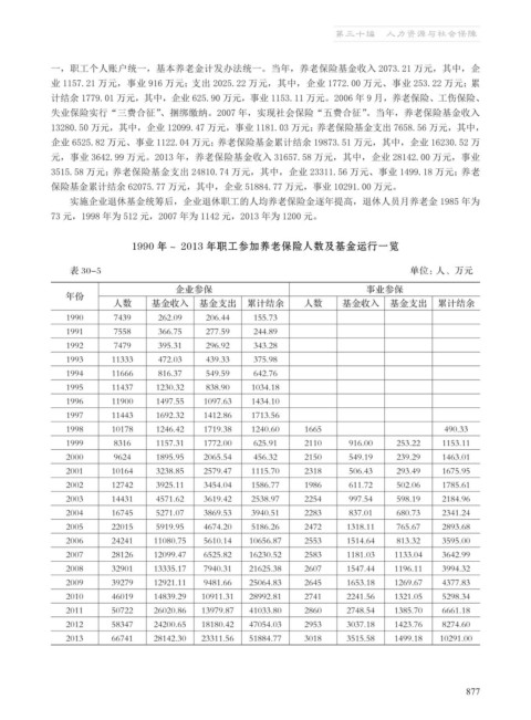 元,事业 3642.99 万元。2013 年,养老保险基金收入 31657.58 万元,其中,企业 28142.00 万元,事业