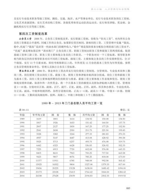 1989 年~ 2013 年三门县在职人员平均工资一览