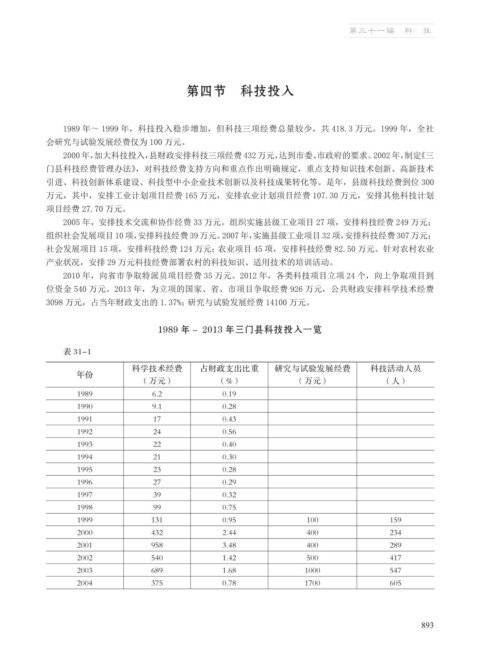 2000 年,加大科技投入,县财政安排科技三项经费 432 万元,达到市委、市政府的要求。2002 年,制定《三