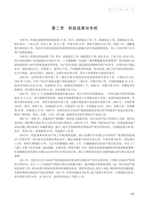 2003 年,出台《三门县鼓励发明创造实施办法》,设立专利专项奖励基金,一次性安排专利专项奖励