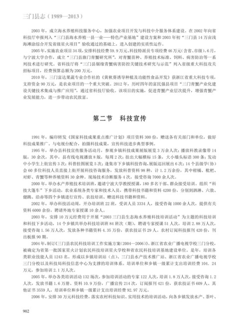 2003 年,安排 10 万元经费用于开展“2003 三门县生态海水养殖科技培训活动”为主题的科技培训