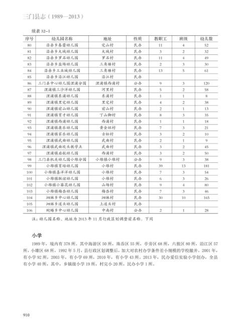 1989 年,境内有 378 所。其中海游区 50 所,珠岙区 55 所,亭旁区 68 所,六敖区 80 所,沿江区 57