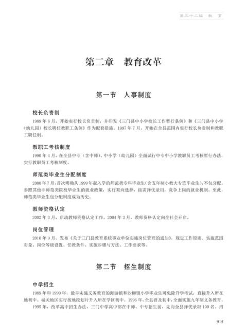 2010 年 9 月,发布《关于三门县教育系统事业单位实施岗位管理的通知》,规定工作原则、实施范围