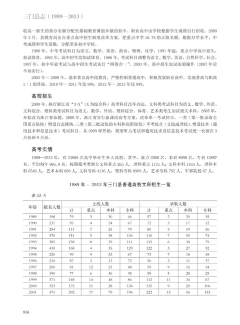 1989 年~ 2013 年三门县普通高校文科招生一览
