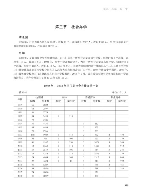 1989 年~ 2013 年三门县社会力量办学一览