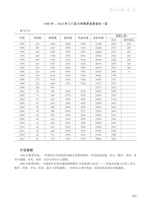 1989 年~ 2013 年三门县小学教育发展变化一览