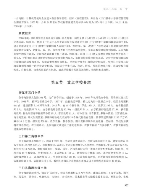 评选活动。2001 年,使用《三门县中小学生素质综合发展评价手册》《三门县中小学教师教学业绩手册》,