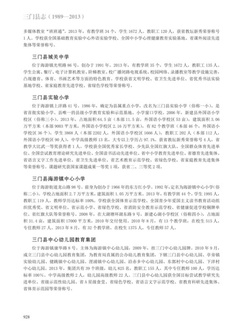 标率 100%。中学高级教师 2 人,幼儿园高级教师 22 人。三门县中心幼儿园获全国目标尝试教学研究先