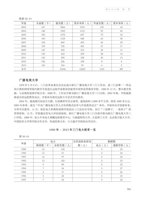 1989 年~ 2013 年三门电大教育一览