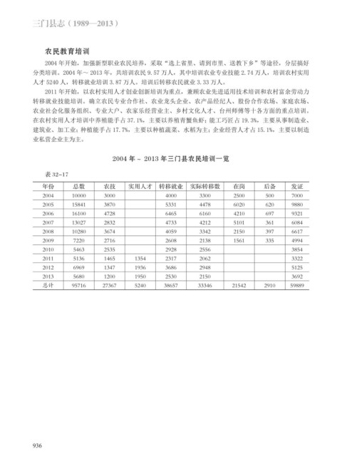 2004 年~ 2013 年三门县农民培训一览