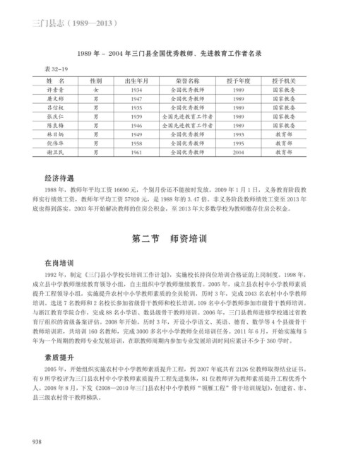 1989 年~ 2004 年三门县全国优秀教师、先进教育工作者名录