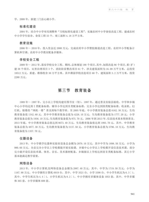 灯机、银幕的“两机一幕”普及到每个教学班。至 2005 年底,中小学教育装备总值 6162.30 万元,生均