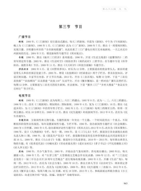 专题 1990 年,推出《振兴三门经济》系列报道。1996 年,开设《生活五线谱》《温馨预约》二档