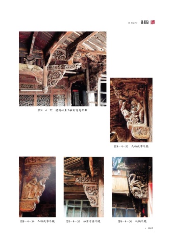JIUZONG 旧踪 图8-4-52 檐廊转角二枝轩卷蓬组雕 图8-4-53 人物故事牛腿 图8-4-54 人物故事牛腿 图8-4-55 如意古典牛腿 图8-4-56 双鹤牛腿 · 1013