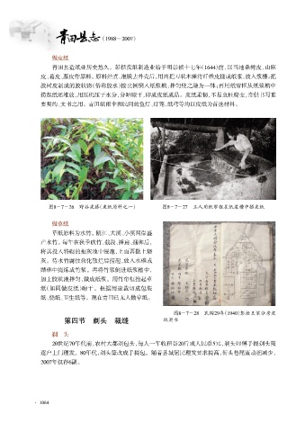 图8-7-26 野谷皮藤(皮纸原料之一) 图8-7-27 工人用纸帘框在纸浆槽中捞皮纸