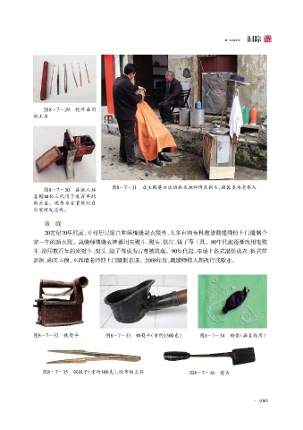 家一年的新衣服。裁缝师傅缝衣裤都用炭熨斗、熨头、铁尺、镊子等工具。80年代起逐渐改用电熨