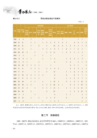 1988~2007年,移送司法机关,追究刑事责任有160人: 1988年5人、 1989年6人、 1990年5人、 1991