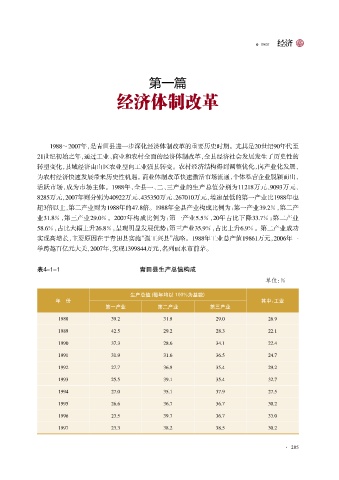 超3倍以上,第二产业则为1988年的47郾8倍。1988年全县产业构成比例为:第一产业39郾2%,第二产