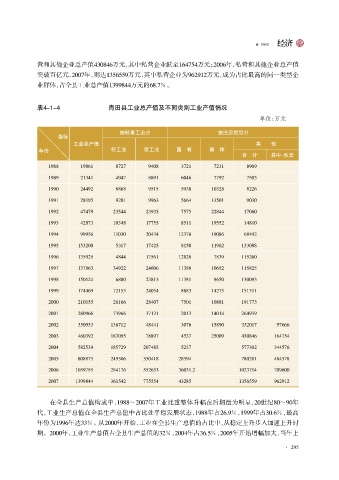 在全县生产总值构成中, 1988~2007年工业比重整体升幅在后期最为明显, 20世纪80~90年