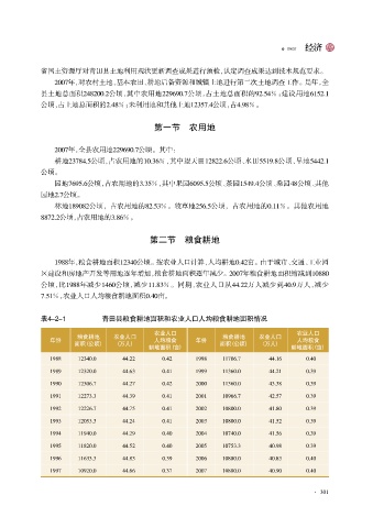表4原2原1 青田县粮食耕地面积和农业人口人均粮食耕地面积情况