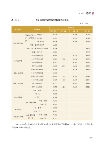 1993~2007年,电费电价大范围调整4次,居民生活用电平均提高0郾213元/千瓦时,工业用电平