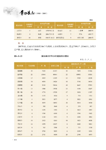 表4原8原20 青田县2007年乡村通自来水情况