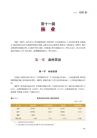 2007年,在林业用地面积中,有林地189082公顷,占林业用地的91郾31% ;灌木林13069公顷,占