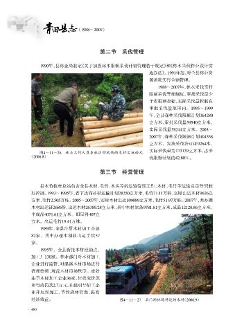 经济效益。 图4-11-27 石门洞林场待运的木材 (2006.9)