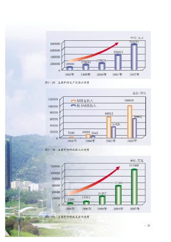 GAIMAO 概貌 图1-29 主要年份生产总值示意图 图1-30 主要年份财政收入示意图 图1-31 主要年份财政支出示意图 · 23