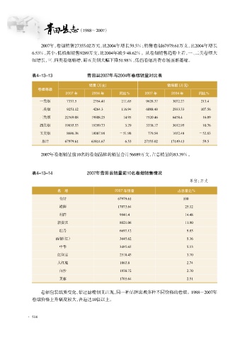 表4原13原14 2007年青田县销量前10名卷烟销售情况