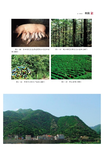 GAIMAO 概貌 图1-40 青田现代生态养殖有限公司良种母 图1-41 瓯江绿色长廊生态公益林(2007) 猪(2004) 图1-42 章村乡油茶生产基地(2007) 图1-43 峰山茶场(1989)