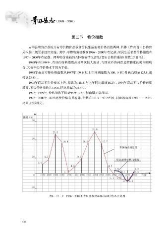 图4-17-9 1986~2000年青田县物价涨幅 (指数) 情况示意图