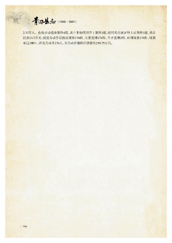 988 1 2 007 ) ~ (1988~2007) ( 2郾33万人。查处劳动违法案件4起,其中非法使用童工案件3起,招用无合法证件人员案件1起,共计 罚款13郾7万元;接受劳动争议投诉案件176件,立案受理174件,不予受理2件,审理结案174件,结案 率达100%,涉及劳动者174人,为劳动者挽回经济损失239郾75万元。 · 594