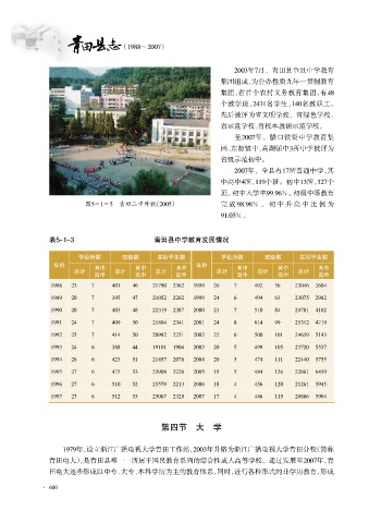 图5-1-5 青田二中外貌(2005) 完 成 98郾98% , 初 中 升 高 中 比 例 为