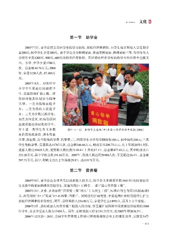 对上述一类学生在义务教 图5-1-12 县领导王通林(中)在爱心助学活动中捐款 (2006)