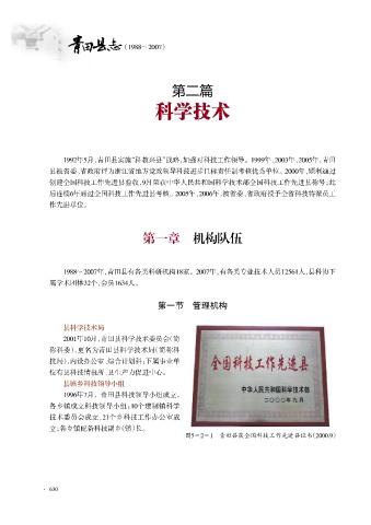 图5-2-1 青田县获全国科技工作先进县证书(2000.9)