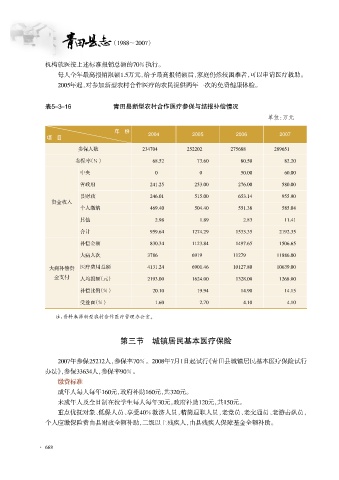 2007年参保25212人,参保率70%。2008年7月1日起试行《青田县城镇居民基本医疗保险试行