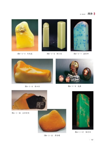 SIXIANG 四乡 图6-1-5 灯光冻 图6-1-6 封门青 图6-1-7 蓝青田 图6-1-8 金玉冻 图6-1-9 龙蛋 图6-1-10 五彩青田 图6-1-12 绿青田 图6-1-11 黄金耀 · 747