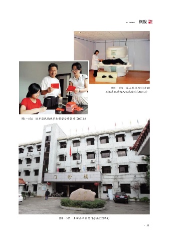 GAIMAO 概貌 图1-103 县人民医院引进磁 共振系统并投入临床使用(2007.3) 图1-104 城乡居民踊跃参加新型合作医疗(2007.8) 图1-105 青田县中医院门诊楼(2007.4) · 55