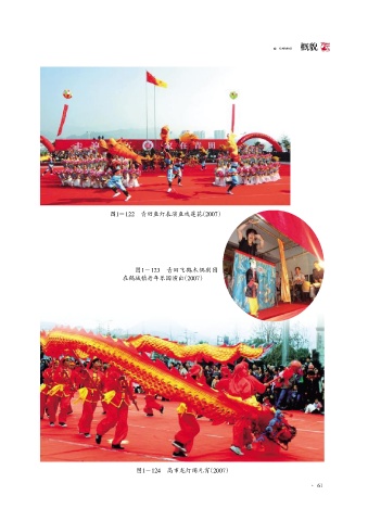 GAIMAO 概貌 图1-122 青田鱼灯表演鱼戏莲花(2007) 图1-123 青田飞鹤木偶剧团 在鹤城镇老年乐园演出(2007) 图1-124 高市龙灯闹元宵(2007) · 61
