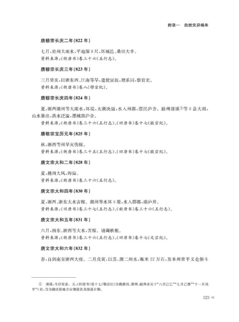 资料来源:《新唐书》卷三十五《五行志》、《旧唐书》卷十七《敬宗纪》。